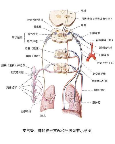 附:脑干自下而上由延髓、脑桥、中脑三部份组成。下图以呼吸中枢为例描述了呼吸中枢调节各种反射的重要性。
