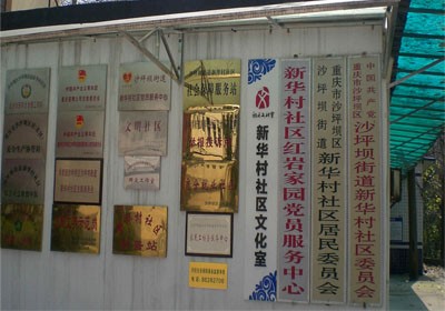 最近发现重庆大学A区校园内新华村、松林坡两个社区搞邪恶的展板,污蔑、诽谤法轮功创始人李洪志先生。特别是新华村社区,法轮功学员多次用不干胶真相贴、真相资料等形式,呼唤他们的良知善念,希望他们明白真相后,停止犯罪,改邪归正,撤除展板内容,十几天过去了,展板的内容仍不见更换。