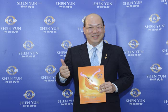 台中市东区狮子会会长、上格印刷及友旺实业总经理陈建盛,于三月十五日晚上约同十几位狮友一同观赏神韵。第一次观赏神韵就被深深震撼,他赞叹神韵是中国人的荣耀,是典范,不论是舞蹈、音乐、天幕、服装都让人为之惊艳。其中,他特别喜欢现场的音乐,并盛赞动态的天幕做得非常好,他形容比获得多项奥斯卡奖的著名电影还要好。