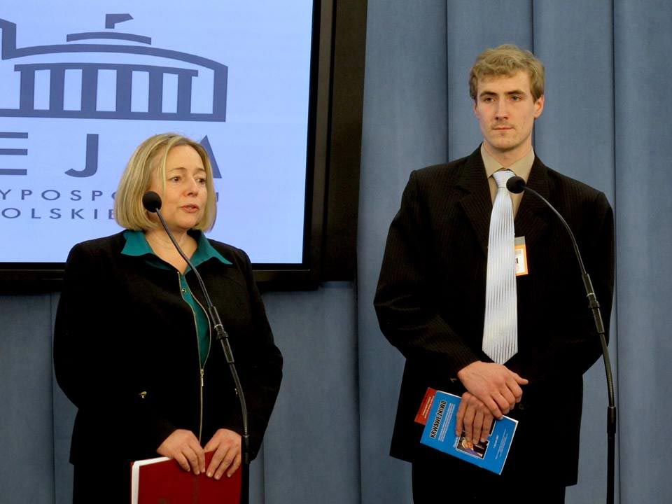 ![]() 波兰众议院副议长WANDA NOWICKA女士(左)在议会大厦内召开新闻发布会 |