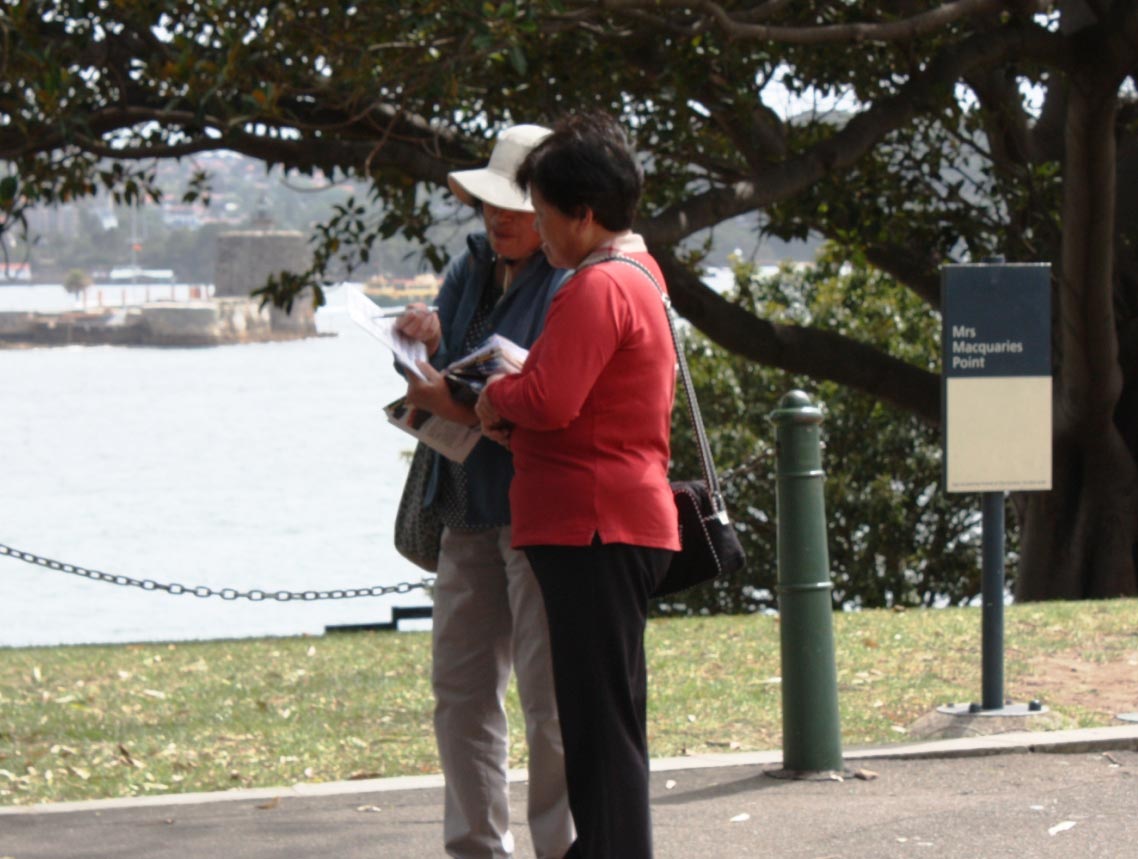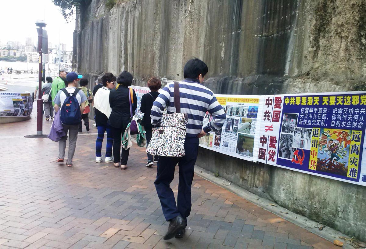 【明慧网二零一四年三月六日】新年以来,大量的中国游客来澳洲旅游,悉尼的退党义工们不顾炎炎烈日、刮风下雨,坚持在旅游景点、机场和车站向民众讲真相。而现在越来越多的中国人开始清醒,往往三言两语就办了三退,还经常有一群人一起退的。
