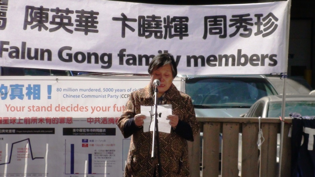 【明慧网二零一四年四月十六日】二零一四年三月十二日被石家庄国保大队桥东公安分局非法抓捕的法轮功学员陈英华目前生命垂危,她居住在加拿大的母亲黄金玲女士于四月十四日在加拿大卡尔加里中领馆门前再次召开新闻发布会,呼吁社会各界关注生命垂危的女儿,给以紧急救助,要求中共立即释放女儿陈英华和同时被非法拘捕的卞晓晖和周秀珍。