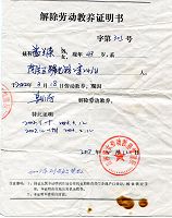 就这样我在长春市黑嘴子劳动教养所里度过了一年的时间,才重获自由之身。在被非法劳动教养期间,我单位的人事处处长谢秋摆一直都没给我发工资,说这是政治问题,不只你一个人,还有某某某。一直到现在也没给补。
