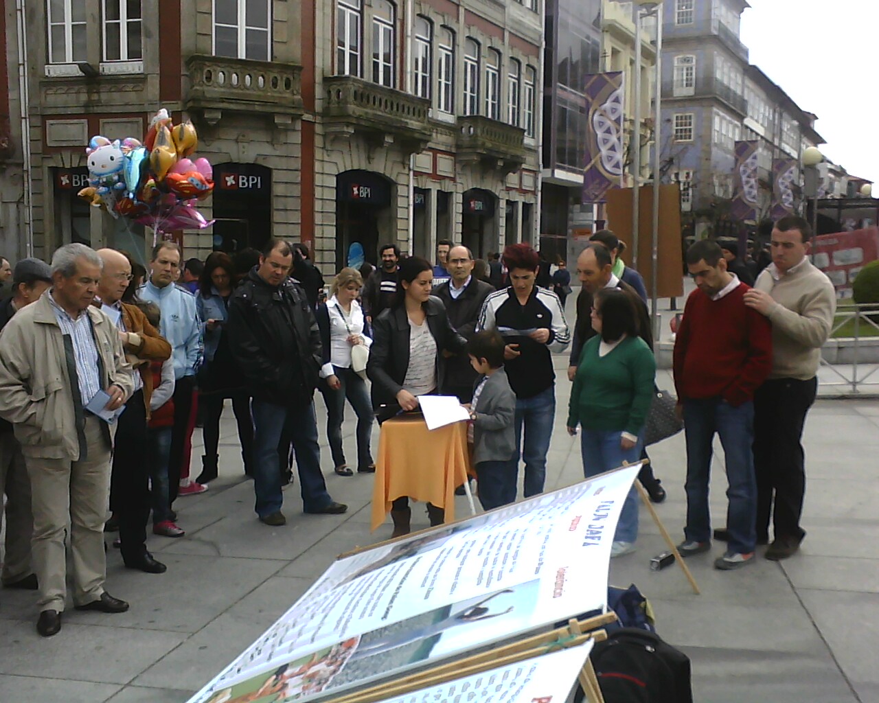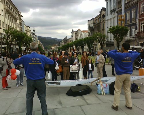 法轮功学员首次来到布拉加市,吸引大批民众。