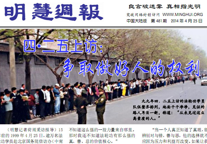 四•二五上访,是法轮功学员在中共迫害升级的情况下,不得已采取的合理合法的反迫害举动。四•二五上访,展示了法轮功学员和平理性的境界,展示了他们维护正义良知的道德勇气。