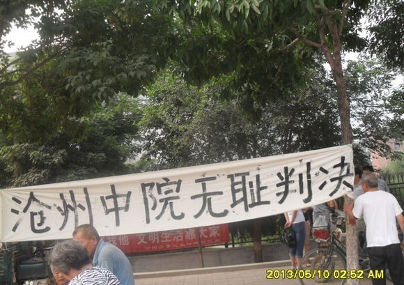 二零一三年五月七日早八点,河北省沧县法院如临大敌。在沧州市、沧县政法委及六一零的操控下,出动市县大批警力戒备,不通知家属,甚至对法院内部的人都保密的情况下,沧县法院仅用了二十分钟的时间,就偷偷摸摸地完成了对古稀老人孙玉强的违法庭审。次日,沧县法院以审委会的名义,非法宣判孙玉强三年有期徒刑。孙玉强老人面对无端的迫害,有冤无处诉,只得绝食抗议。