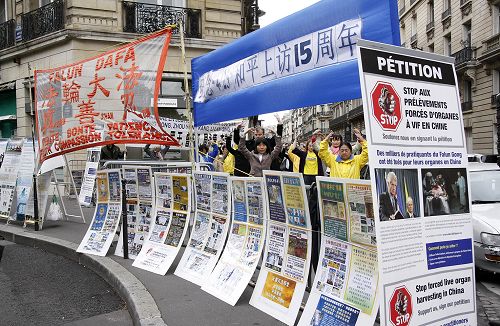 “四·二五”十五周年 法国学员中使馆前呼吁制止迫害