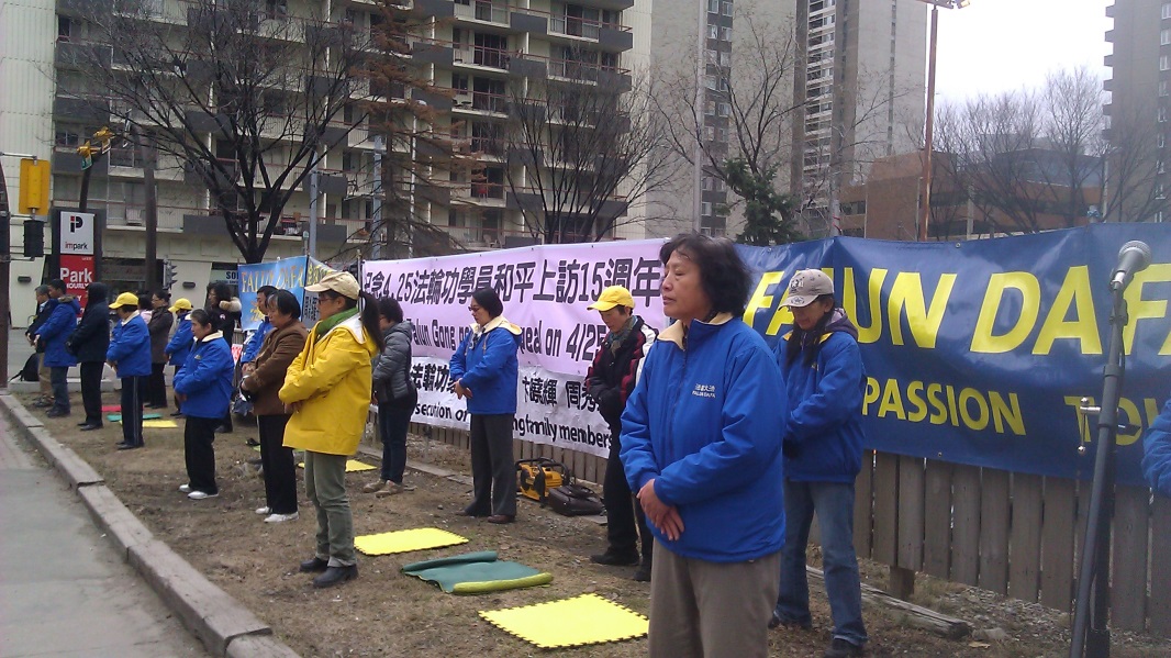 纪念“四•二五”,法轮大法学员在加拿大卡尔加里中领馆前集会。