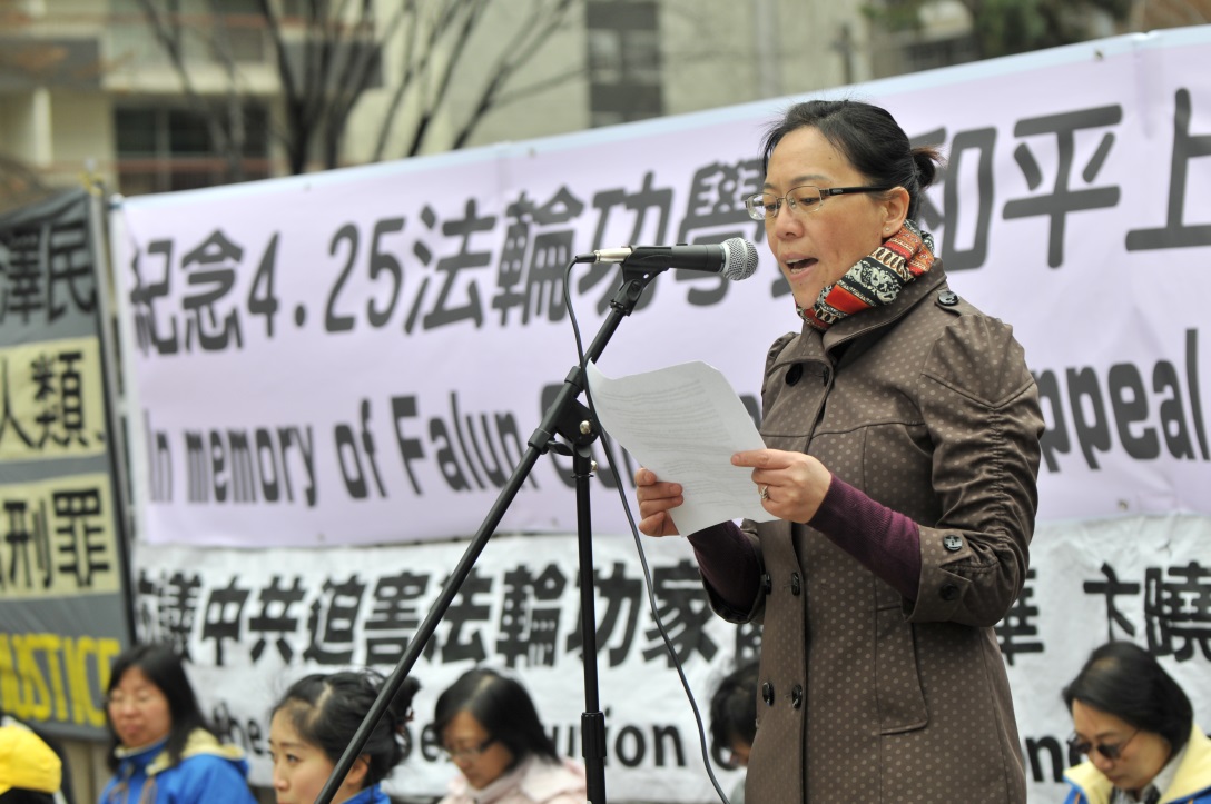 在集会上,法轮大法学员杨杰夫是一九九九年“四•二五”前夕,为天津事件参加上访的法轮功学员之一,他指出,为了争取和平的炼功环境,法轮功学员怀着对政府的信任,于一九九九年去国务院信访办反映情况,当时受到时任总理的接见,被国际社会称为“中国上访史上规模最大、最理性平和、最圆满的上访”。然而共产党邪恶的反人类本性,利用了当时党魁江泽民对法轮功广受欢迎的妒嫉,从而发动了至今历史上最为残忍、最为骇人听闻的残酷迫害,而这种对法轮功修炼者在精神上、肉体上和政治上灭绝人性的迫害,目前仍然在持续着。