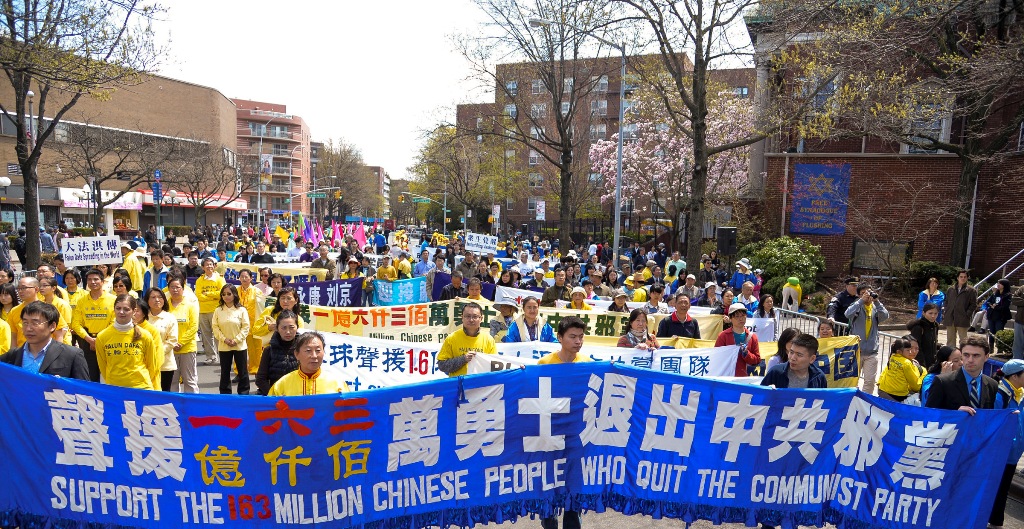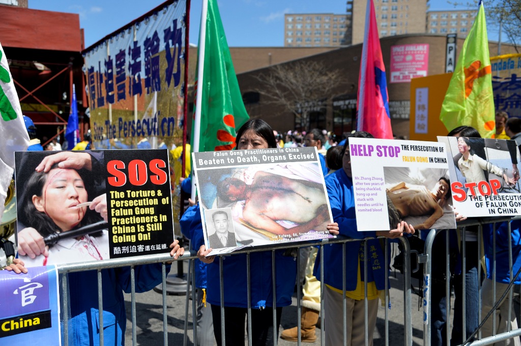 图1-5:法轮功学员在纽约法拉盛举行集会,纪念四•二五,谴责中共迫害