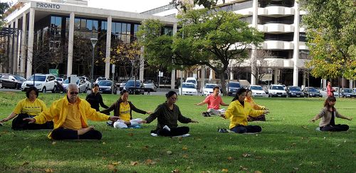 二零一四年四月二十六日,南澳法轮功学员在阿德莱德的Hindmash广场举行了四•二五纪念活动,并向民众讲述法轮功在中国十五年来无辜遭受迫害的真相。不少人驻足在真相展板前仔细阅读,对中共迫害法轮功表示愤慨。