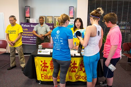 二零一四年“四•二五”法轮功北京万人大上访十五周年之际,美国密苏里州法轮功学员参加了当地多个社区活动,与民众分享法轮大法“真、善、忍”修炼的美好。