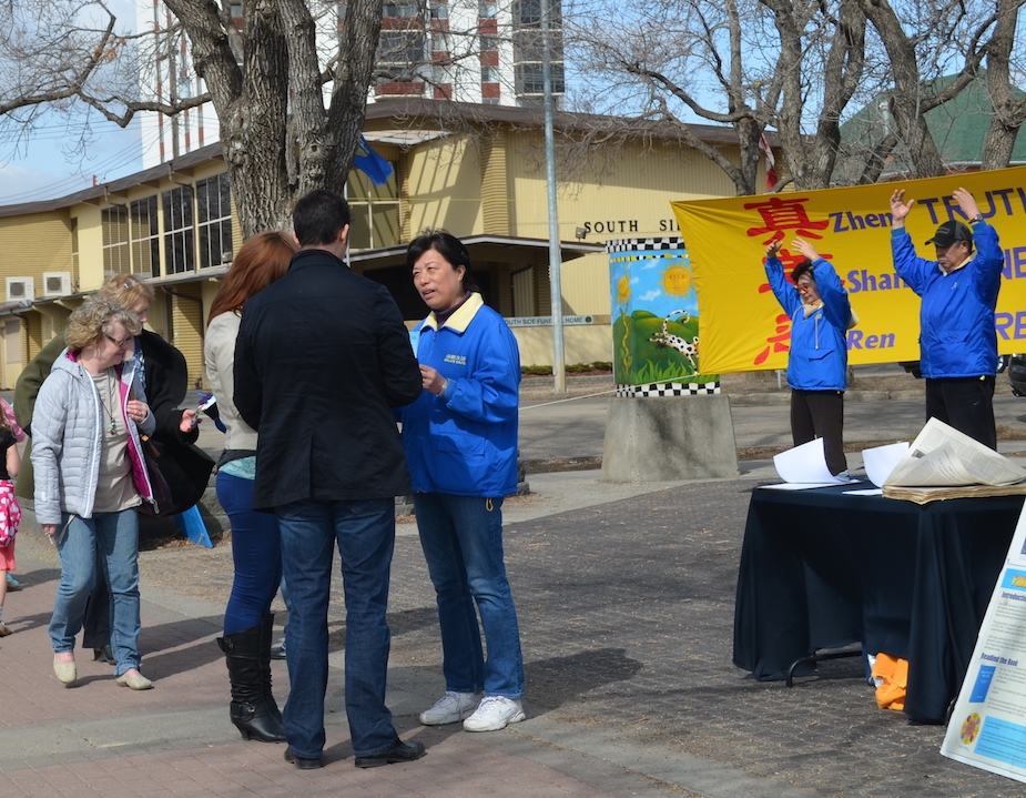![]() 埃德蒙顿法轮功学员在公园举办活动,纪念四二五和平上访十五周年 |