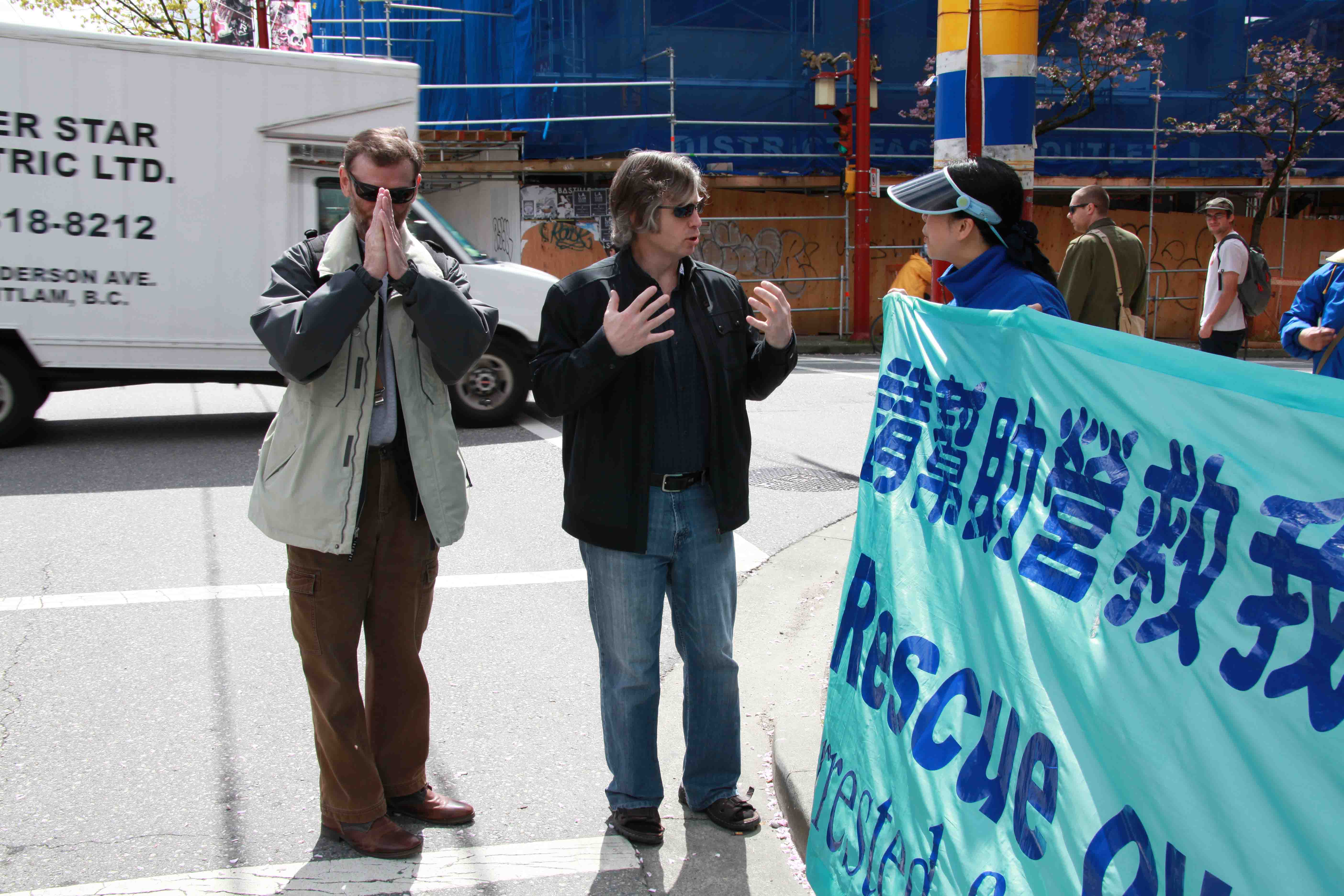 ![]() 加拿大温哥华法轮功学员的讲真相活动现场 |