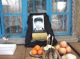 二零零六年四月十三日,王建国的父亲在自家院内搭灵棚祭奠王建国,挂上挽联:“做好人反遭迫害天理难容,白发人送黑发人冤情谁知,四十天惨死看守所”。灵棚搭起后,一下就引起中共警察的恐慌,他们在王建国家附近租房子住,有的好心人怕他们对王建国的家人不利,不租给他们房子,有的人为了自己的利益还是把房子租给了他们,他们一天二十四个小时严密监控,三、四个人一组轮番在王建国家附近监视,看王家到底有什么动向,亲朋好友听到王建国的死讯,都纷纷前来看望,有一个朋友是吉林市的记者,听说王建国被迫害致死的消息后,就跑来这里拍新闻,恶警们看到有记者前来拍摄,生怕王建国被迫害致死的消息传出去,怕事实真相被曝光在电视上,上前一把就把相机抢下,还把记者叫到一旁审问,恐吓记者:这个消息不许报导。