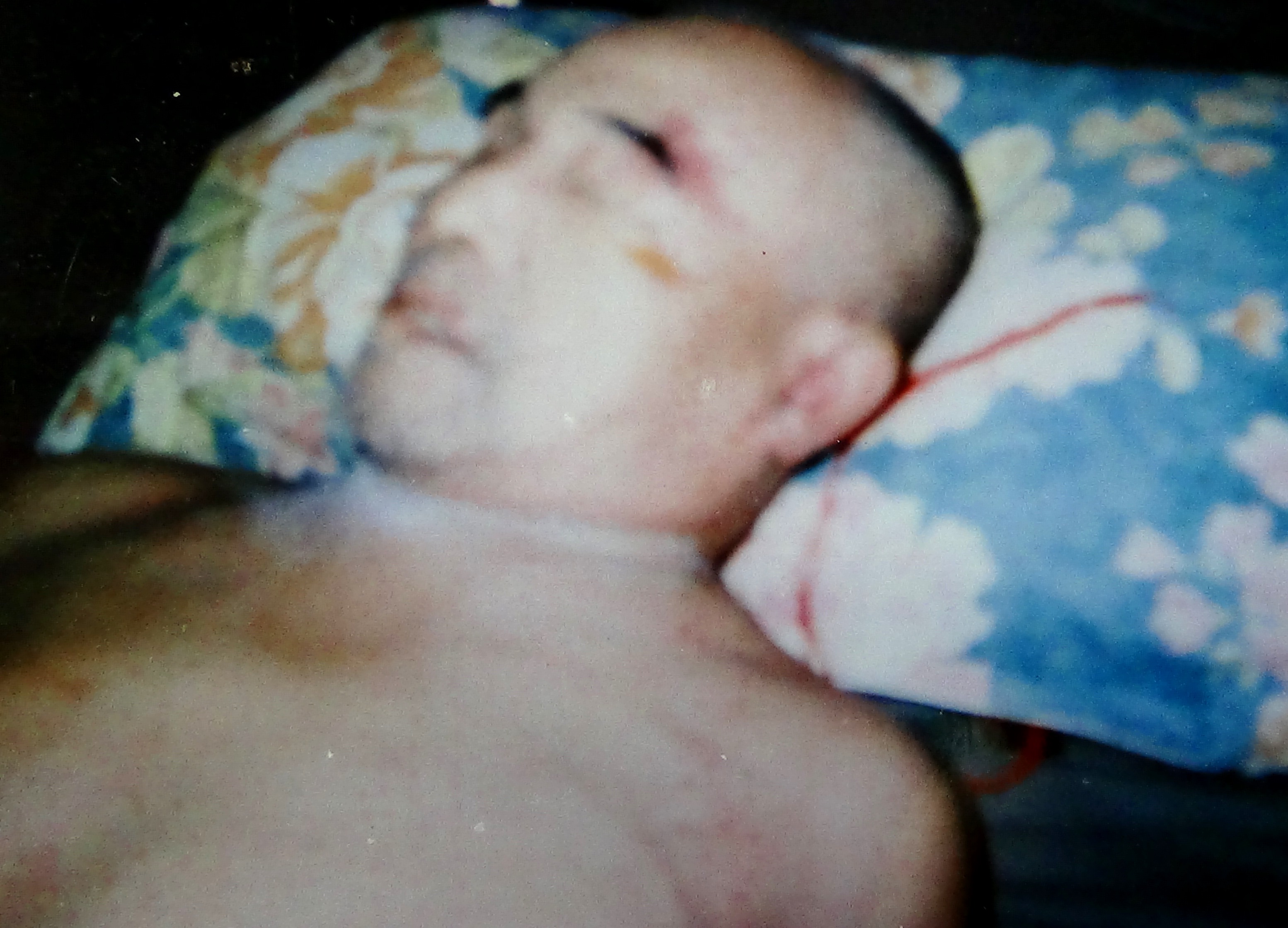 ![]() 张庆军眉梢与颧骨处被恶徒伤害的痕迹 |