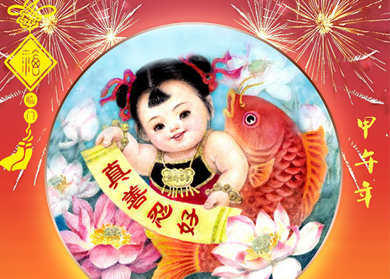 大陆作者为恭祝师尊华诞、庆祝法轮大法日、庆祝法轮大法洪传二十二周年而创作的绘画,愿更多的民众知道“法轮大法好”、“真善忍好”。