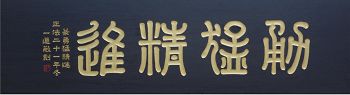 尺寸:148厘米X 41.5厘米颜色:底:黑色 字:金色 印章:红色阴刻大字:圆底阴刻小字:尖底阴刻印章:红色