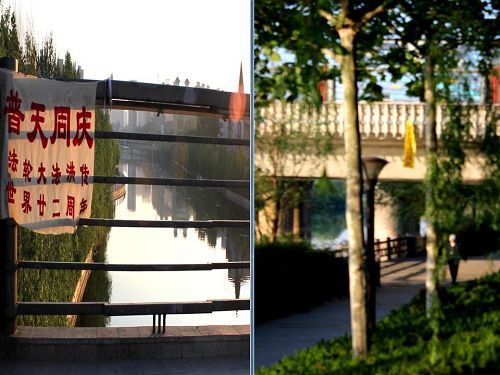 - 山东、辽宁等地大法弟子挂条幅庆祝世界法轮大法日