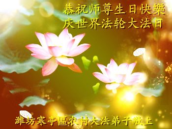 山东省潍坊市寒亭区农村大法弟子恭祝师尊生日快乐!四川省遂宁一农村学法小组全体大法弟子恭祝师父生日快乐!甘肃省庆阳市全体农村大法弟子普天同庆世界法轮大法日!恭祝师尊生日快乐!