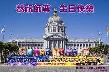 美国旧金山全体大法弟子恭祝师尊华诞!普天同庆法轮大法洪传二十二周年!美国密苏里州大法弟子恭贺大法洪传二十二周年暨师尊华诞美国明尼苏达州大法弟子全家恭祝慈悲伟大的师尊生日快乐!并庆2014世界法轮大法日!美国关岛大法弟子祝贺世界法轮大法日!恭祝慈悲伟大的师尊生日快乐!新穹新宇新乾坤,天地万象在替更。