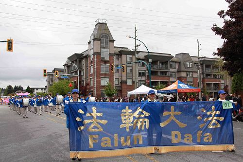 五月十日,加拿大温哥华法轮大法学员参加了大温哥华地区高贵林港市庆祝五月节(May day)的游行,受到观众热情欢迎,有华人赞扬“法轮大法好”,高贵林港市市长Greg Moore先生赞叹“法轮大法无处不在”。