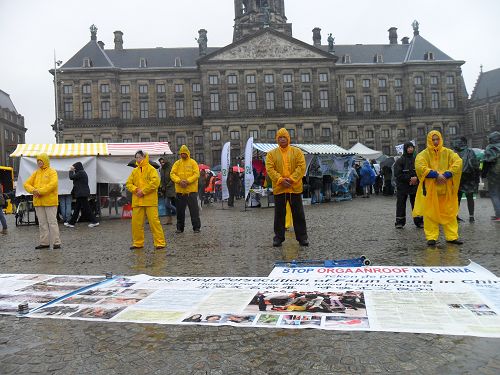 为庆祝第十五届“世界法轮大法日”,让更多人了解法轮功以及发生在中国的迫害事实,二零一四年五月十日,法轮功学员在荷兰首都阿姆斯特丹的皇宫门前达姆广场举行讲真相活动。