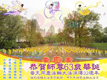 美国纽约、加州等地大法弟子恭贺大法洪传二十二周年暨师尊华诞