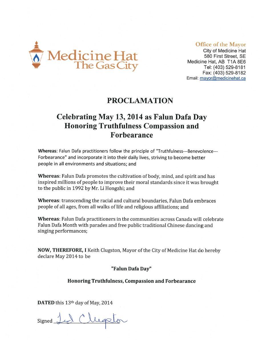 鉴此,我,克伊斯•克拉格斯特恩,麦迪森海特市市长特此褒奖二零一四年五月十三日为
