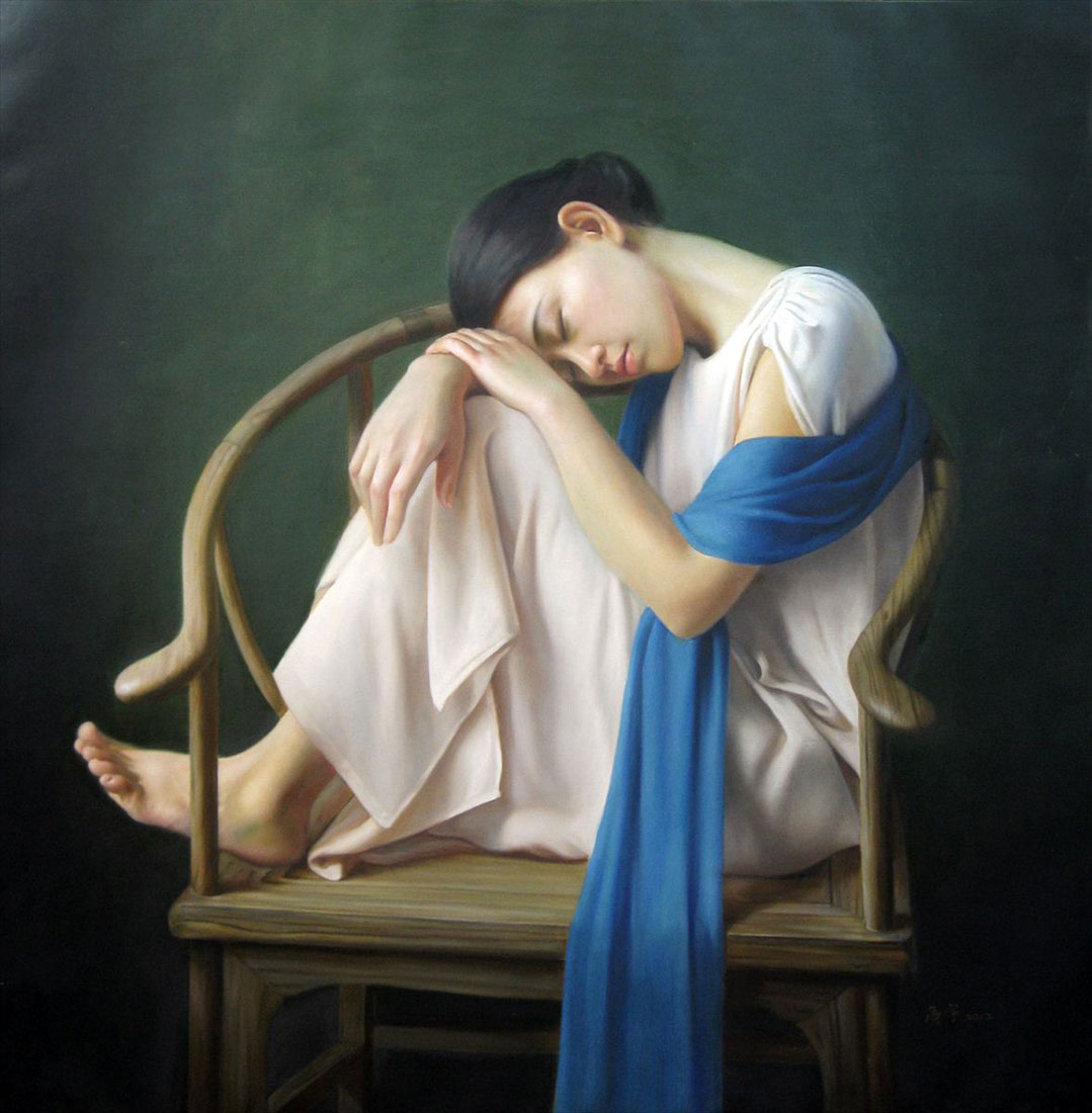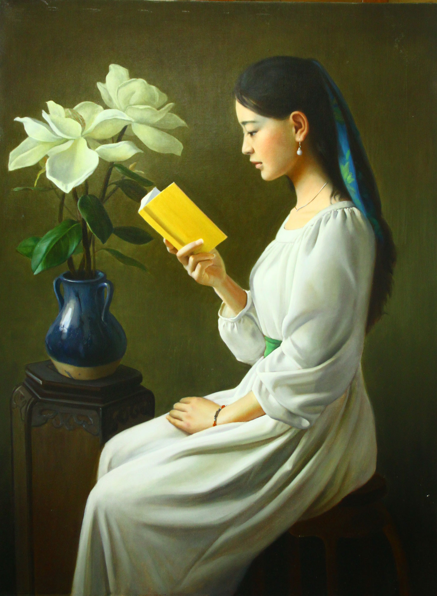 心有明灯,广宇热爱着他的绘画之路,更难能可贵的是,他还认识了一位与他志同道合的女孩,2012年广宇与文婷喜结良缘。广宇才华横溢,画功成熟,文婷才思泉涌,善于表达。婚后,他们举案齐眉,配合互补,一起坚持修炼使心灵不断升华,一起创作出更加纯善纯美的作品……他们热爱中国的传统文化,开始用西方油画技巧展现中国传统文化。在画古代仕女时,为最真实地展现中国不同朝代的真实面貌,他们查阅朝代的服饰、文化习惯、审美观念、妆容,甚至是神态气韵都要反复揣摩。妻子文婷为了更好地与丈夫一起创作,还特意远赴杭州,系统学习中国不同朝代的衣着妆容。