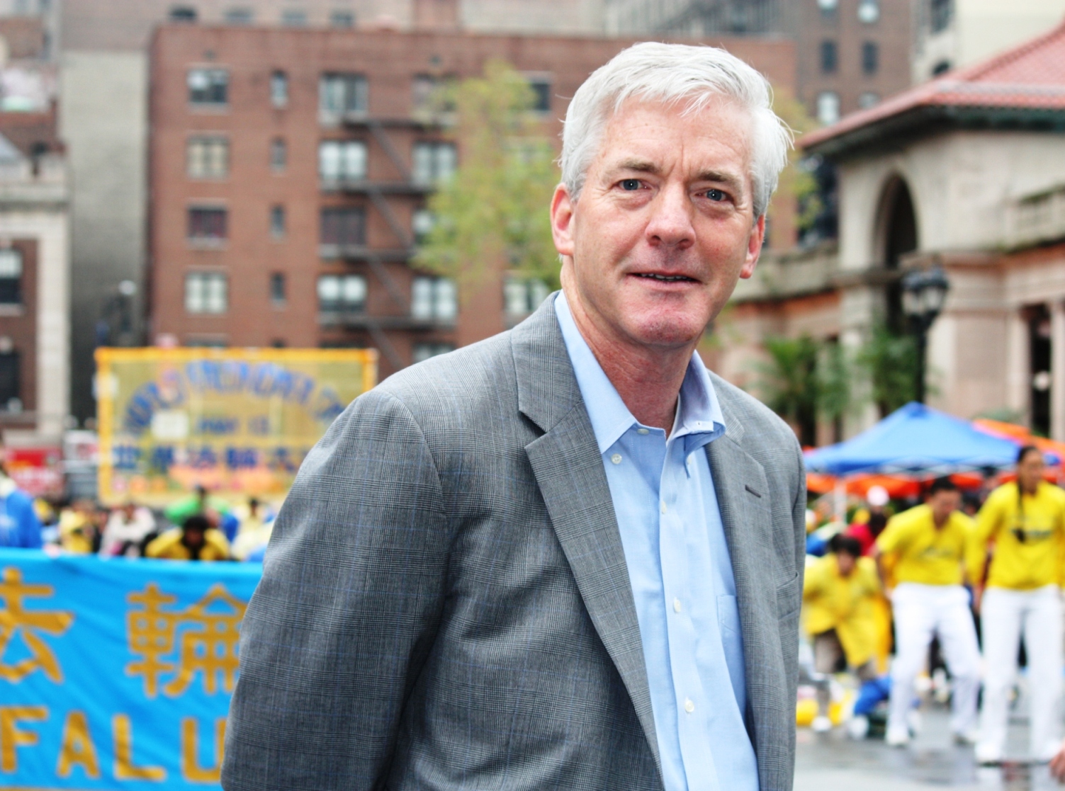 对比法轮功在中国受到打压,他表示:“中共就是不许老百姓这样,不许那样。而在(美国),这里至少言论上是有自由。”他认为法轮功修炼真、善、忍,对社会非常有益。他说:“他们的这些主张,都是我非常赞同的。”