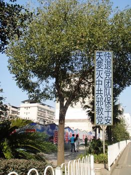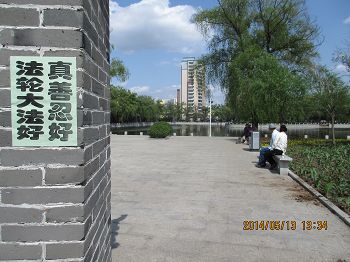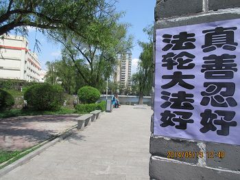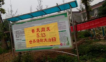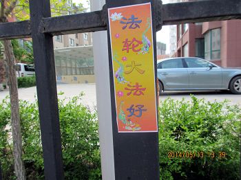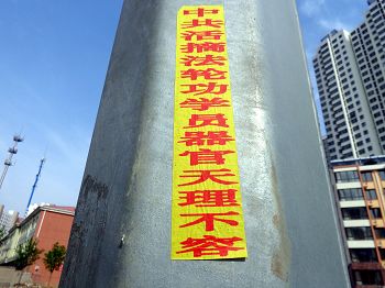 “5.13”世界法轮大法日期间,辽宁省朝阳市街道的法轮功真相条幅