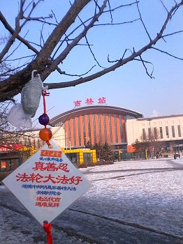“5.13”世界法轮大法日期间,吉林市市区的“法轮大法好”“真、善、忍好”条幅
