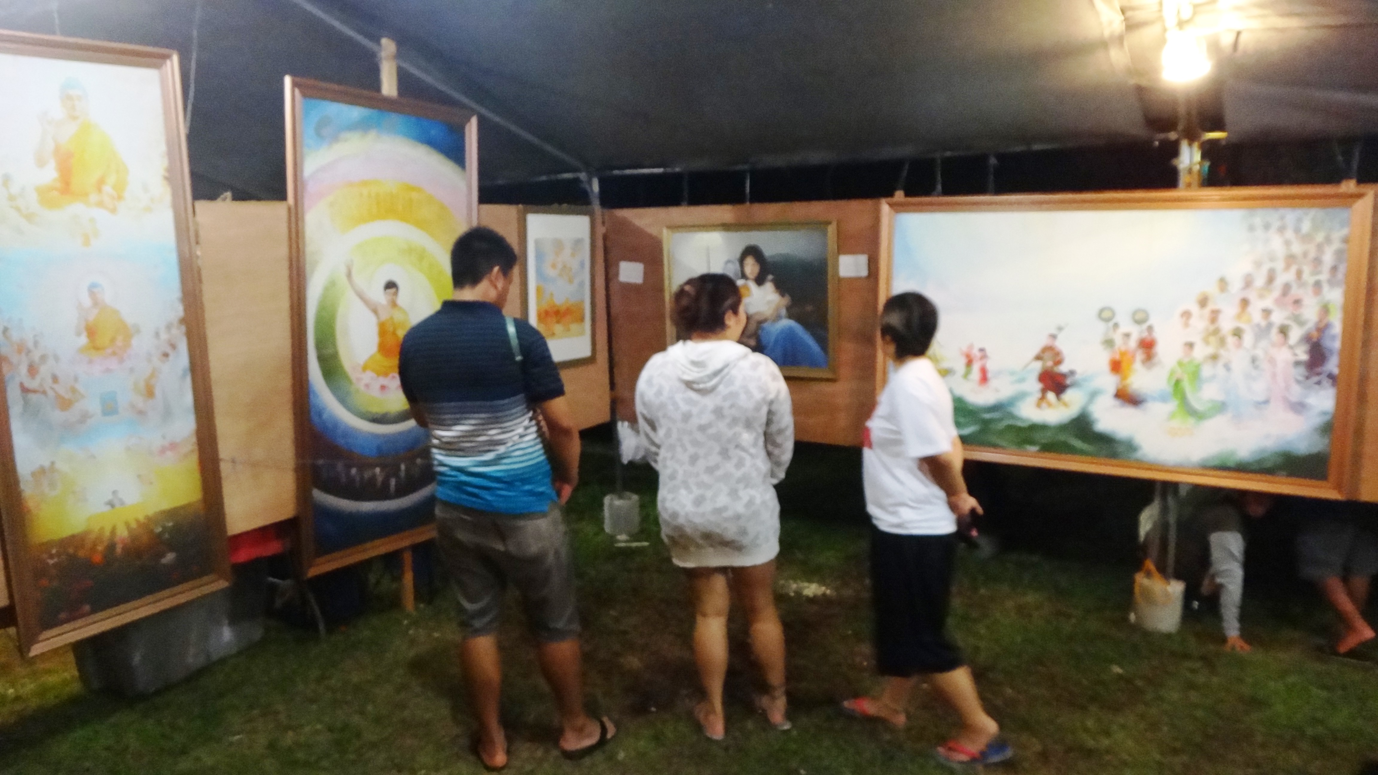 第三十三届塞班岛火树节,游客观赏“真善忍国际美展”画作 |