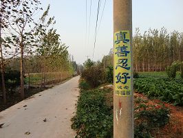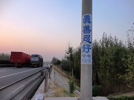 新年期间山东某市公路及铁路边的真相标语及条幅
