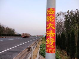 山东、辽宁等地大法弟子挂条幅庆祝世界法轮大法日