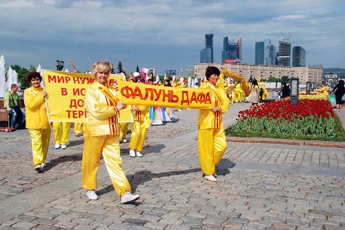 ![]() 图1-3:法轮功学员在莫斯科胜利公园举行庆祝世界法轮大法日的游行活动 |