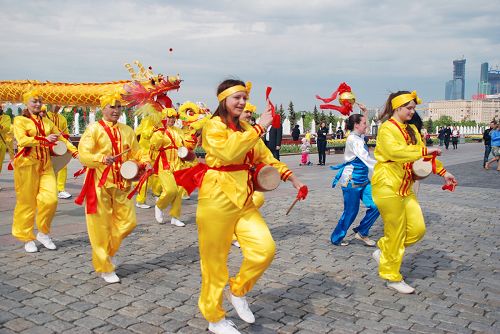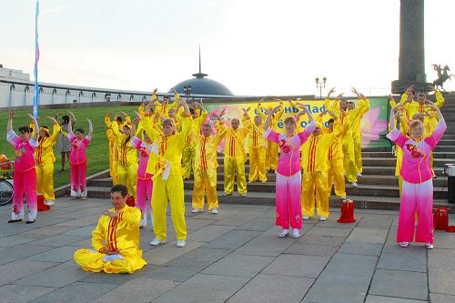 ![]() 图4-6:法轮功学员在莫斯科胜利公园表演文艺节目,庆祝世界法轮大法日 |