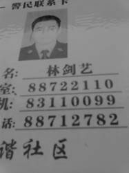 还有两个恶警,从2011年开始,杨世芬被绑架的时候,每次到杨世芬家中骚扰,都有他们的身影,其中恶警林剑艺已经调到石狮市宝盖镇派出所,据悉,杨世芬的死,他应该知情;另一个是新任的610国保大队长,是个男的,是替换曾经的国保大队杨春风。当然石狮市宝盖镇派出所的局长也有责任。