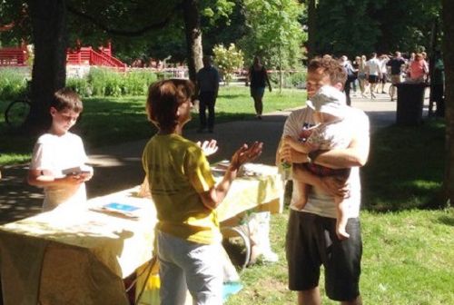 二零一四年五月二十四日,是奥地利施泰而马克州的首府城市格拉茨(GRAZ)每年一次的城市节。为此,格拉茨市的公园设立了活动,当地的法轮功学员也前来参与,向当地民众介绍法轮功以及揭露中共残酷迫害法轮功的暴行。