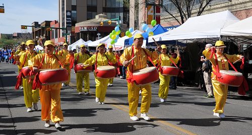 【明慧网二零一四年五月二十七日】二零一四年五月二十五日,加拿大卡尔加里市中心的第四街上人头攒动、摩肩接踵,近十万卡尔加里市民在这里庆祝一年一度的丁香节。这是每年春天,卡城最大的市民庆祝活动,沿街五光十色的展位琳琅满目,音乐、舞蹈、各大小商家、民间团体和各级政要都纷纷加入到街庆的行列中来。卡城的法轮功学员和往年一样,参加了丁香节开幕式游行,并在节日上广传法轮大法的美好。