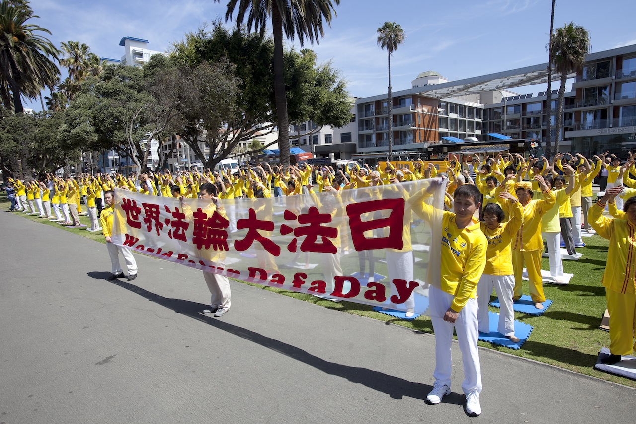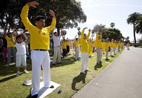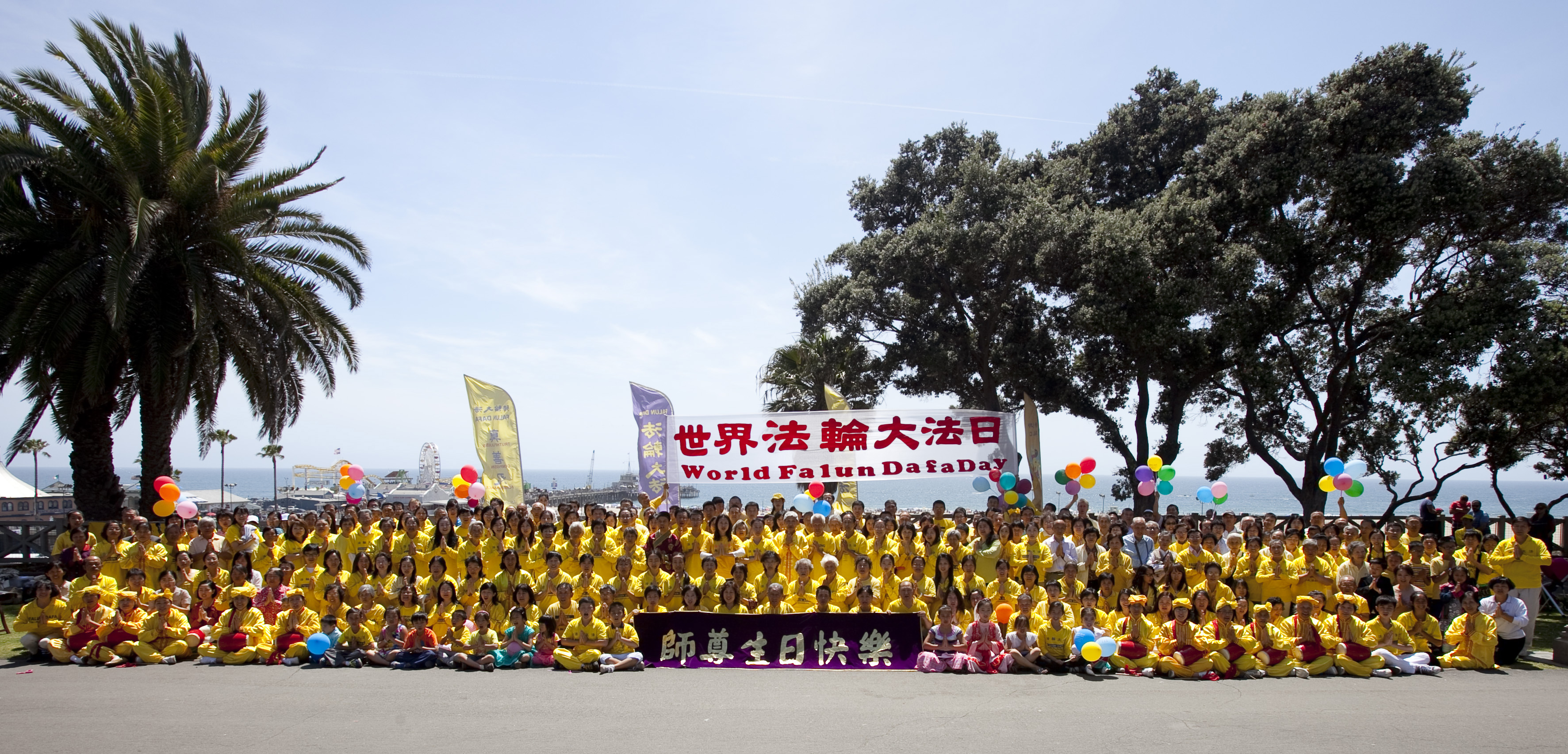 大洛杉矶地区学员集体大炼功,庆祝世界法轮大法日 |