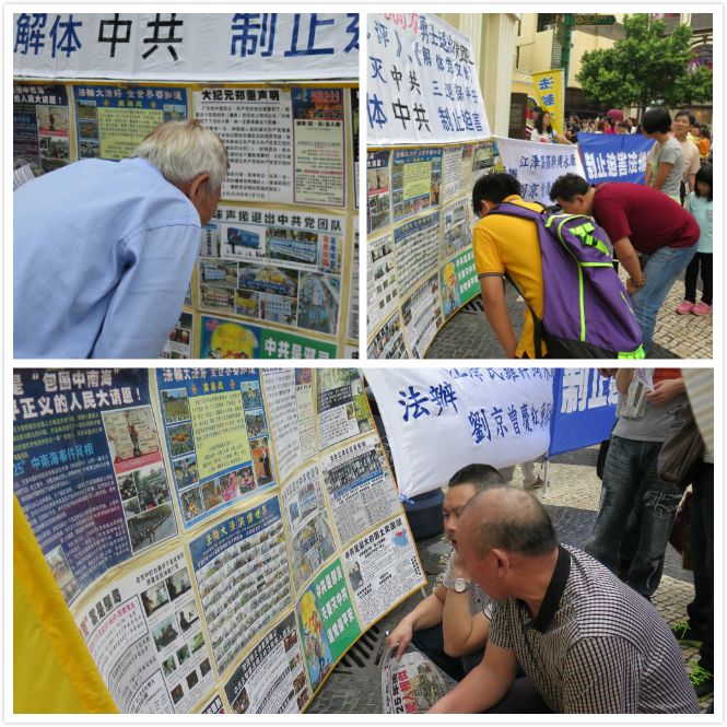 ![]() 澳门法轮功学员在玫瑰堂步行街举办大型真相图片展 |