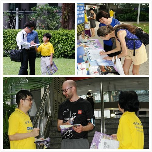 一些路过的中国人也纷纷接过真相资料,并声明退出中共相关组织。一个中国小伙子看到众多法轮功学员集体炼功的盛大场面,震撼得一时不知道说什么好,他说,“这在中国是看不到的。”听了学员讲述中国国内三退大潮的真相后,他欣然同意三退。一位到新加坡旅游的年轻数学教师说,法轮功是一种信仰,他尊重这一信仰。他曾到香港旅游,也曾遇到法轮功学员讲真相。