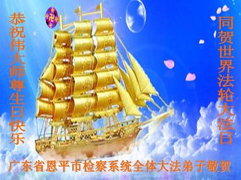 广东省江门市恩平市检察系统全体大法弟子恭祝师尊生日快乐!普天同庆世界法轮大法日!河北省邯郸卫生系统全体大法弟子庆祝世界法轮大法日!恭祝师尊生日快乐!胜利油田大法弟子庆祝世界法轮大法日!