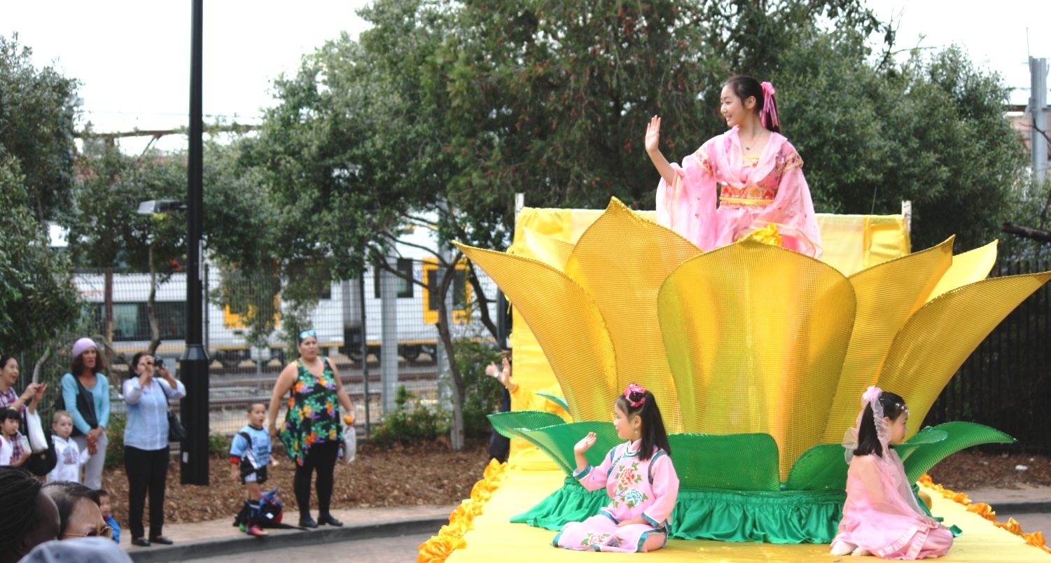 今年的游行从上午十一点多开始,法轮功学员的方阵成为当日游行队伍中最大的方阵,他们由天国乐团、花车和腰鼓队组成,所到之处迎来了道路两旁市民们的欢迎掌声和赞扬声。法轮大法队伍的祥和、亮丽,再次为每年一度的澳洲传统节庆增添无限美好。人们抢拍镜头,争相合影,对法轮功学员赞叹不已。