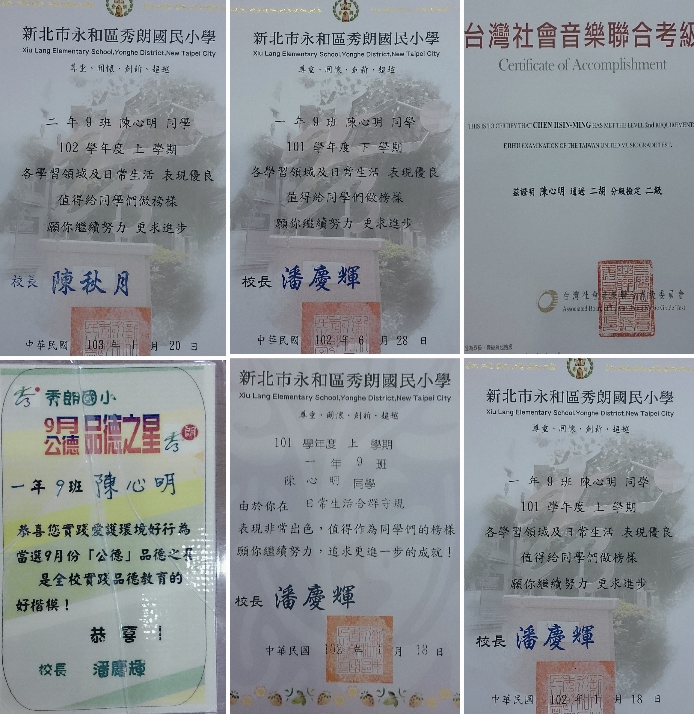 台湾大法小弟子心明品学兼优有才艺,获得许多奖励