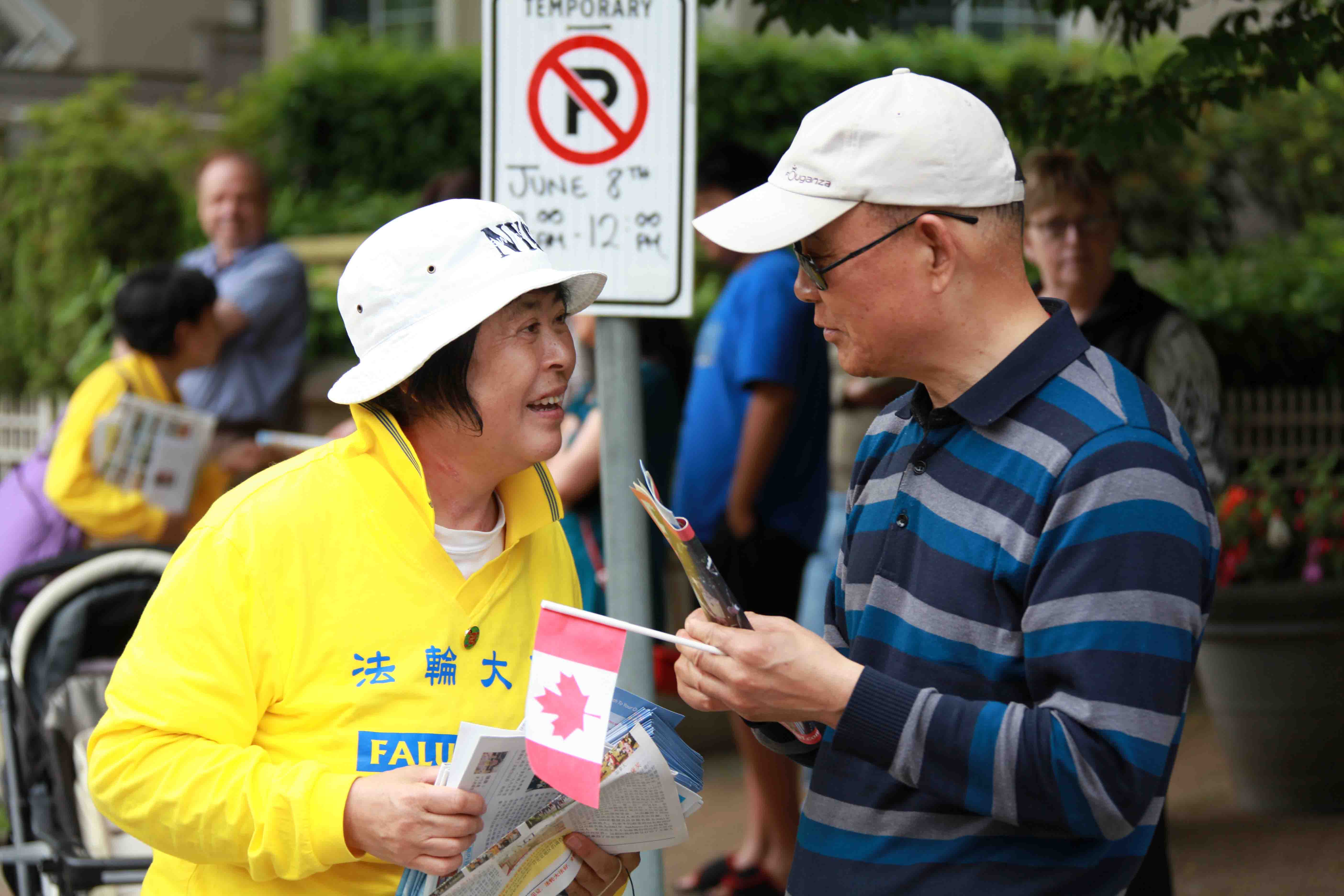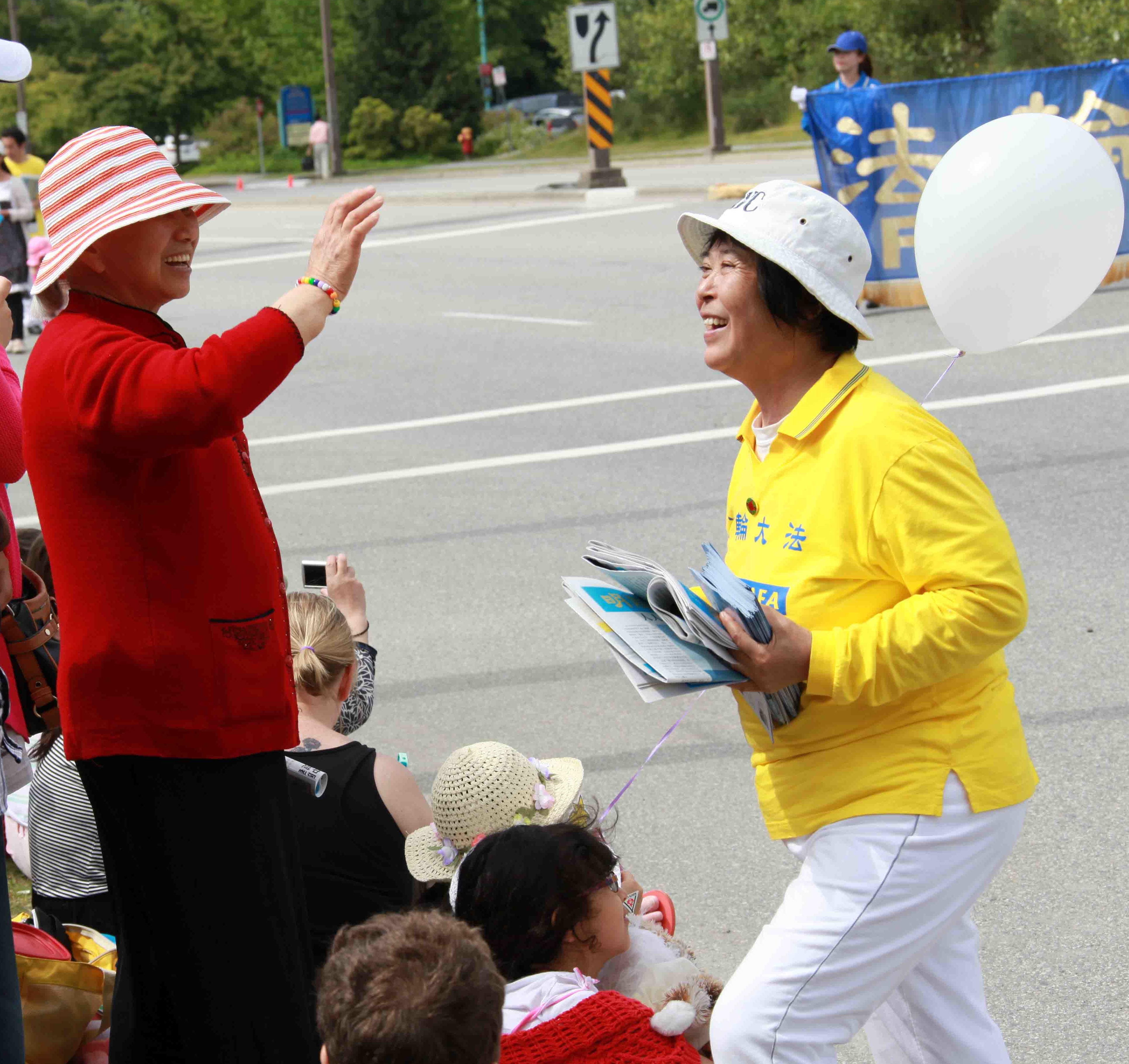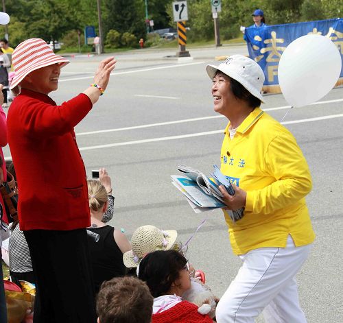 高贵林市(Coquitlam)是大温哥华地区新星城市。近几年有很多华人移民纷纷在高贵林市购买住房,搬入高贵林市,其中很多是从大陆来的技术移民,这些大陆移民经过几年在加拿大的生活,已经拥有了稳定的工作。在前来观看游行的人群中有很多华人,这些华人很多都愉快地接受了法轮大法的真相资料,为法轮大法鼓掌,而且很多大陆华人现场“三退”。