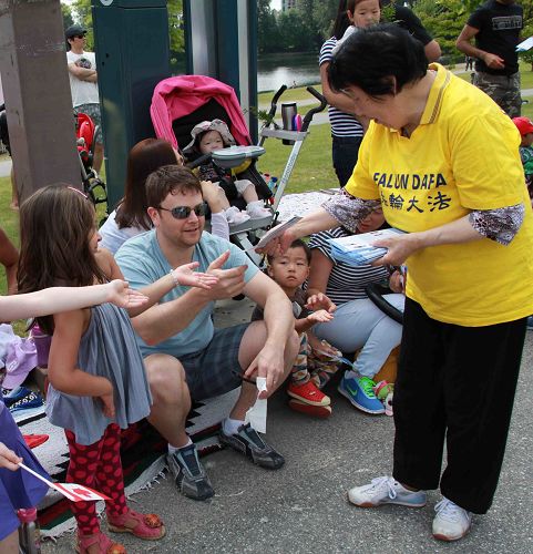 ![]() 华人很多都愉快地接受了法轮大法的真相资料 |