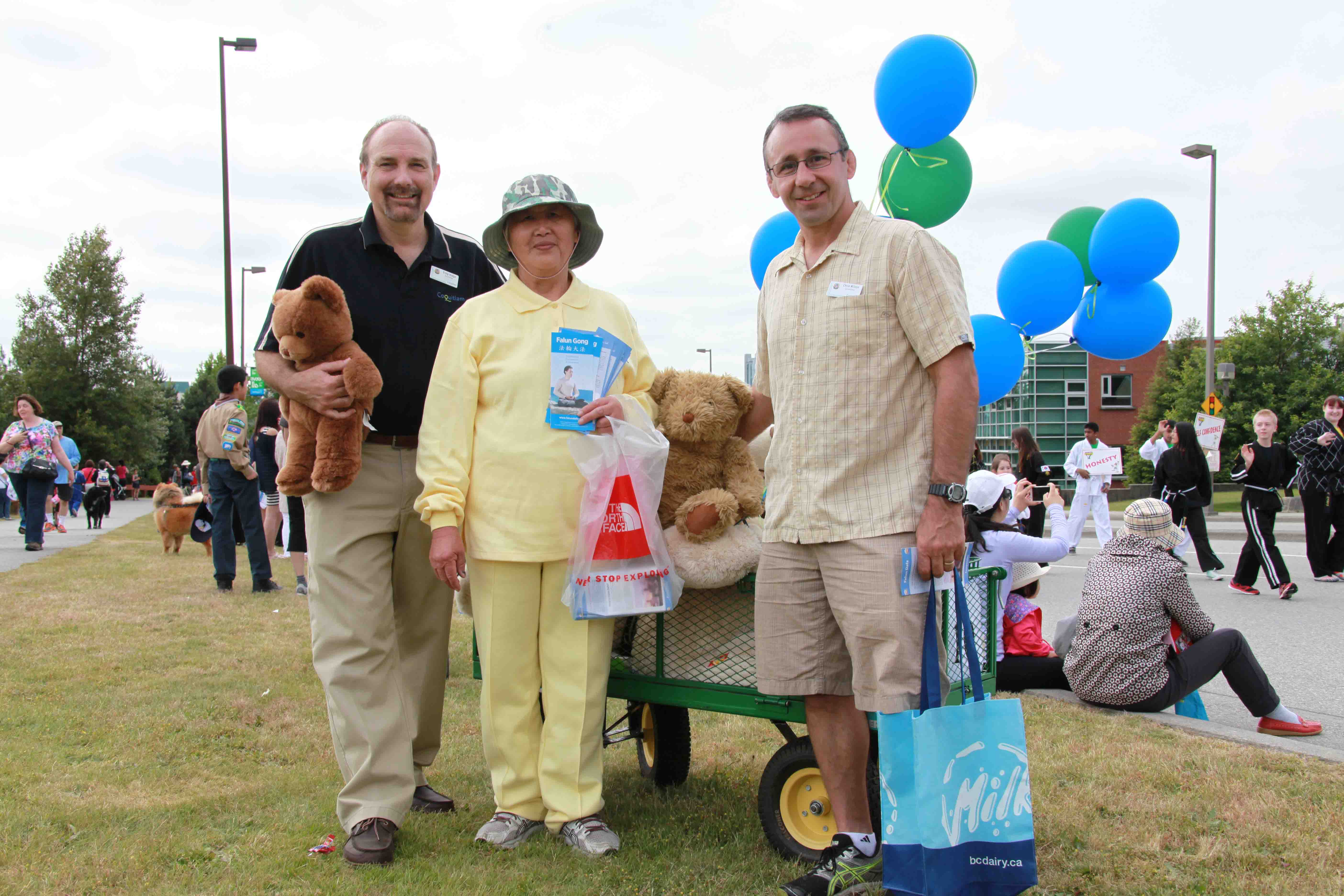 ![]() 温哥华法轮大法学员参加了高贵林市(Coquitlam)“泰迪熊节”(Teddy Bear)游行,受到观众热烈欢迎 |